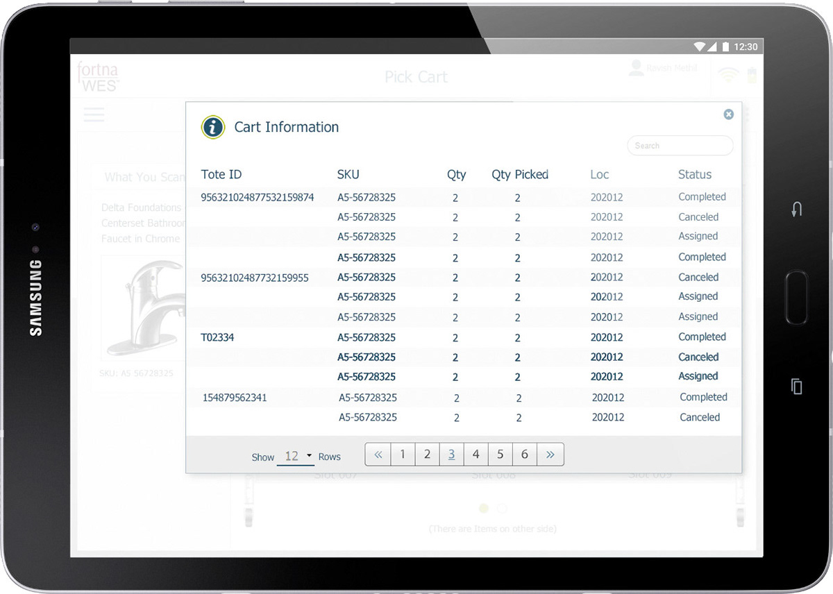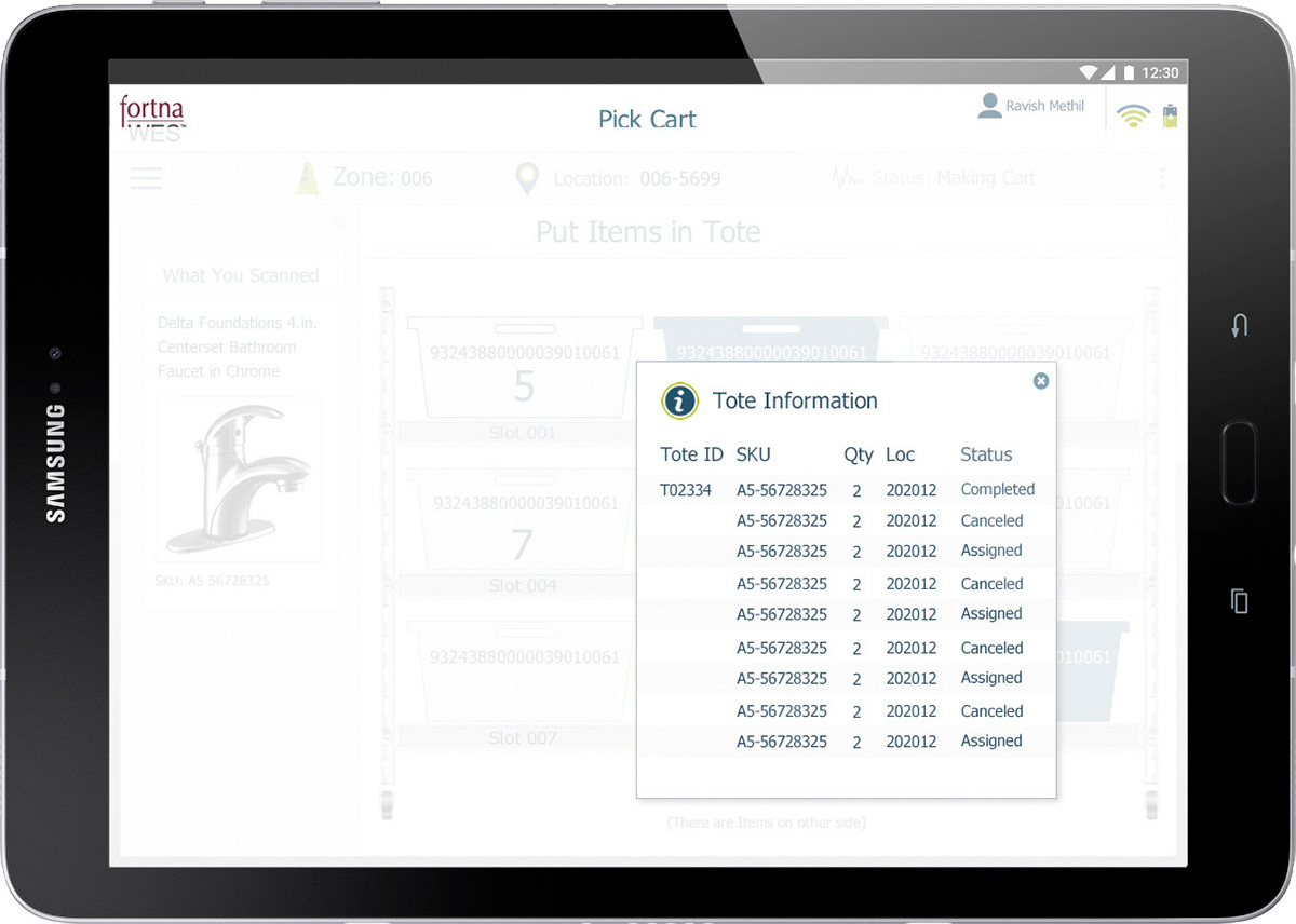 Cart Picking App - Users visually confirm manual tasks, while updating Warehouse System